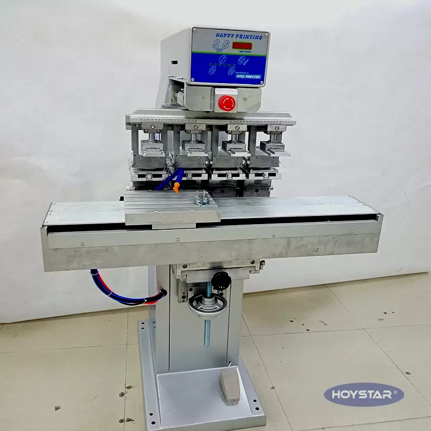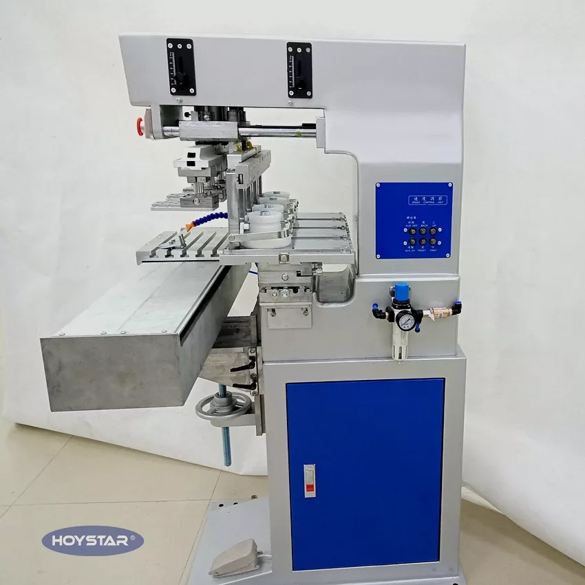 Hoc HOYSTAR 4 Color Pad Printer Cum Shuttle Worktable pro Cover est summus capacitas et sumptus efficens excudendi instrumentum. Apparatus opportunam proportionem, operationem stabilem et effectum bonam imprimendi praebeat. Machina stabilis imprimendi qualitatem tradit et apta ad excudendi amplitudinem rerum ut electronicarum productorum, testarum plasticarum, productorum ferramentorum, stationariorum, artium parvarum et artificiorum, necnon logos minorum in superficie donorum et plurium. Typographiae diversus mos postulationem videre possimus.