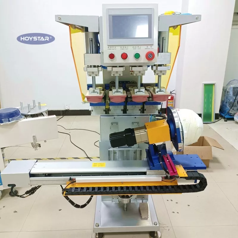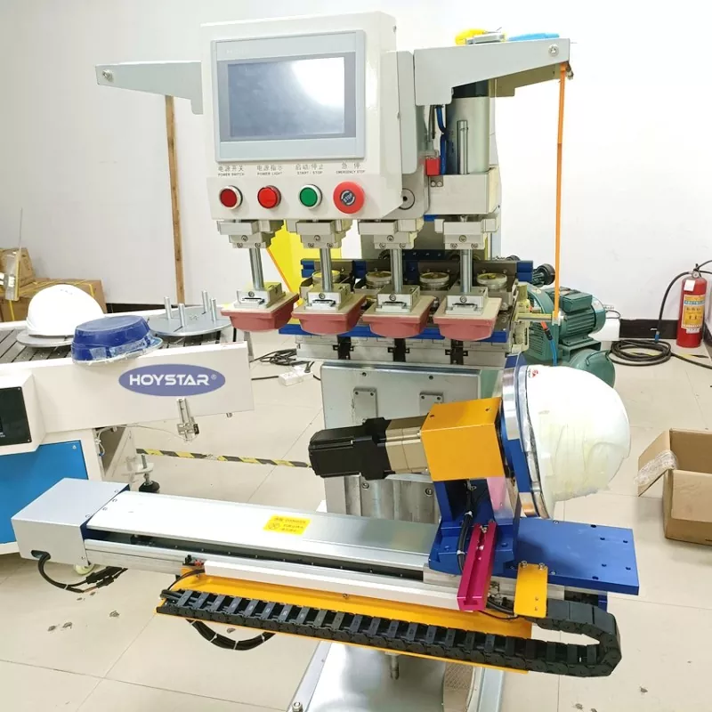 Tabernam nativus 4 Color Pad Apparatus Typographiae For Galeam ex Dongguan Hoystar Machinery Co., Ltd., quae una est e fabrica et praebitoribus in Sinis. Hoc HOYSTAR 4 Color Pad machinae Typographiae Galea instructa cum PLC tactus screen imperium panel facile ad operationem. Haec machina notae servo motore imperium pro gyratorio imprimendi automatice optiones offerentes imprimendi in 1 parte, 2 latera, vel 4 laterum galearum. Opus operabile ad dextram, angelum gyrum, productuum altitudines accommodetur. Unumquodque caput excudendi est independenter aptabile ac separatim constitui potest.