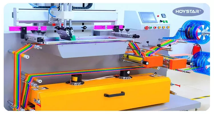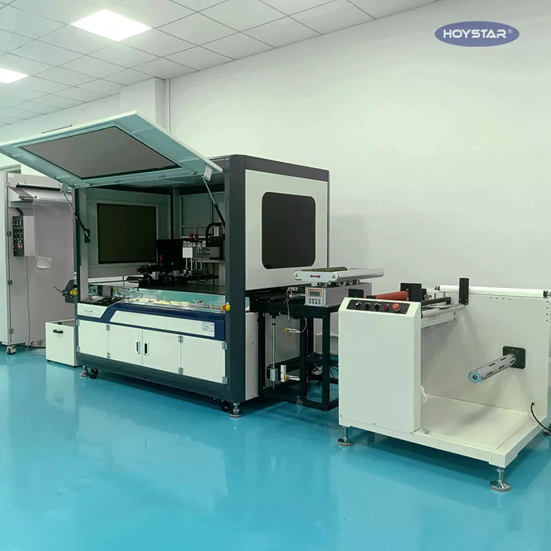 Hoc HOYSTAR tribuit Pelliculam Roll ad revolvendi Screen Typographia Machina. Apparatus instructus cum adnotatione photoelectric, PLC touchscreen controllata, occasus customisabilis, apta ad imprimendum variis pelliculis, tapes, etc.