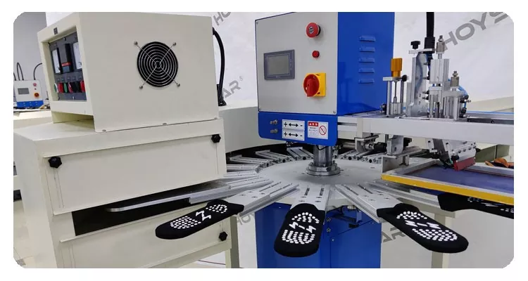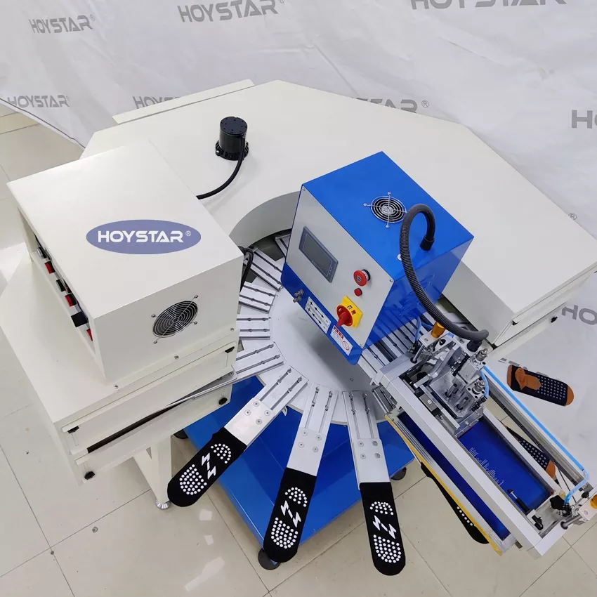 Ut opificem professionalem et elit, Hoc HOYSTAR High Rapid Large size Udones Serico Screen Printing Machina designatur applicationes in conexione textili industriae. Celeritate ad 1200PCS/Hr, apta ad imprimendas tibialia non labentia, tibialia infantia, tibialia adulta, tibialia morbi, etc. In gyratorio operabili et 16 workstationi instructus, commodissimum est tibialia onerare et exonerare. PLC tactus screen control, facillime operari. Machina systematis siccationis instructum Pii et atramentum bene desiccare potest.