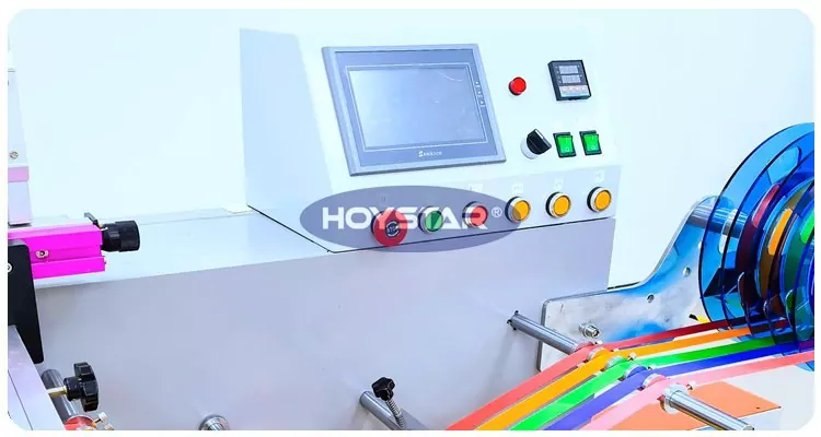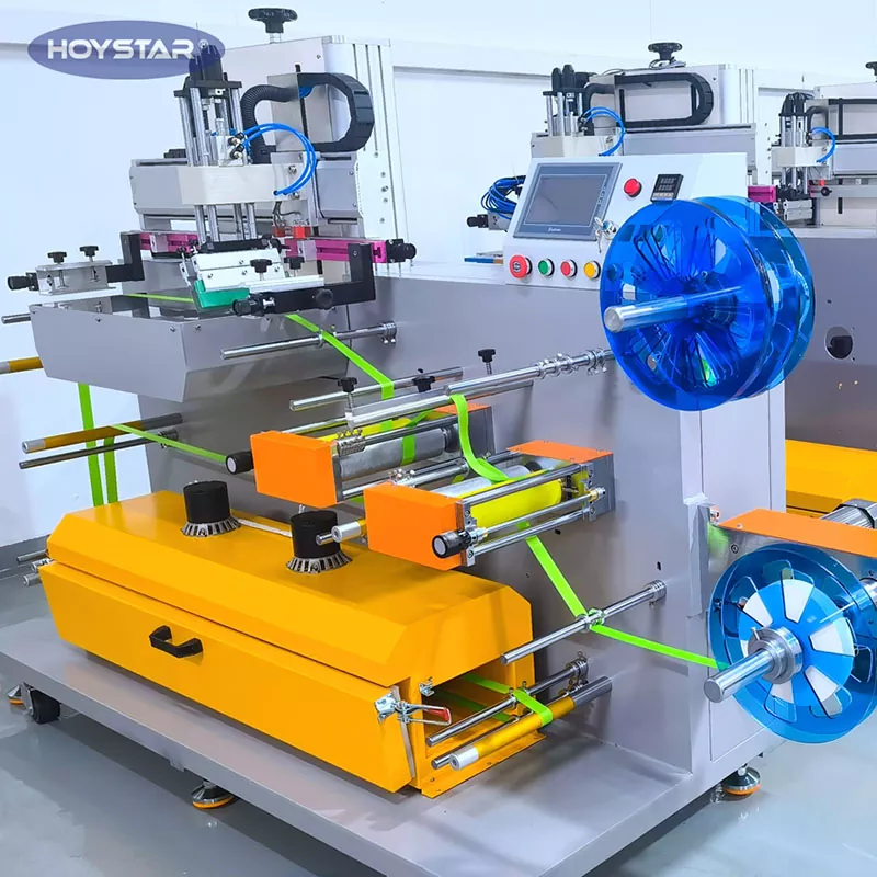 HOYSTAR certa fabrica et copia in Sinis est; Hoc HOYSTAR Roll To Roll Screen Printing Machine is designed for printing on various vitta. Modus reel duplex firmum alendi et lenis productionem efficit. PLC tange screen imperium, interface amica usoris ad operationem intuitivam tutam. Duplex clibanus exsiccans cum circulatione aeris calidi cito et aequaliter potest siccare atramentum.