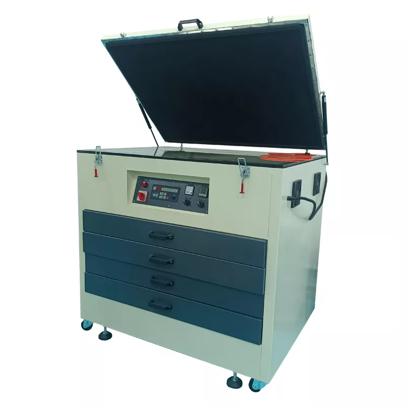 Infra nostrum Uv Vacuum Expositio Apparatus Cum Siccatio, Est specialis UV detectio machina cum sicciore, facile operari & humilis sumptus usus pro caudex stencilo , pro serico tegumentum, lamina tegumentum, lamina lamina ferrea. Patefacio ieiunii et clibani siccando, nisi tempus. ,UV lampades longae sunt.