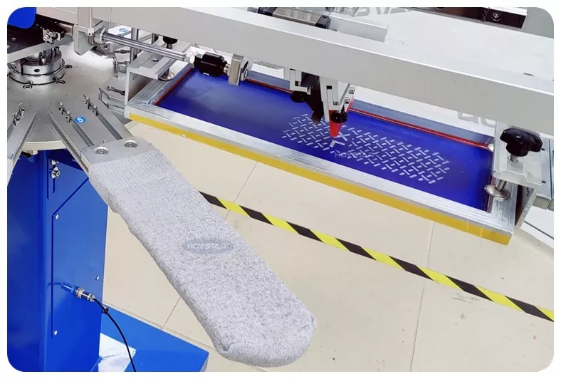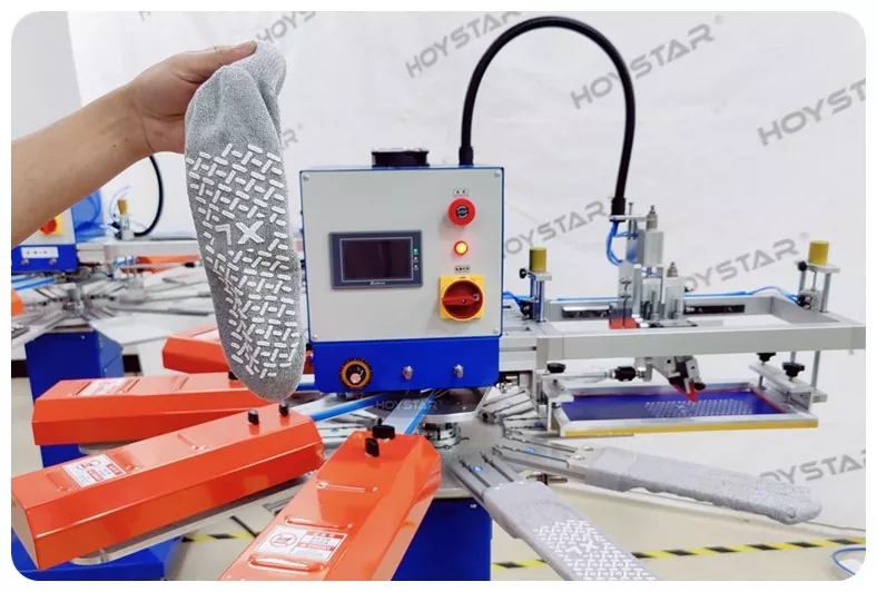 Nostrum Non-Slip Screen Printing Machina pro Socks designatur pro socks summus qualitas non-lapsi sicut tibialia infantem, tibialia pet, tibialia adulta, tibialia morbi, tibialia tenaci. Apta artificibus specialiter athleticis, medicis, pueris, et tibialibus yoga ad imprimendum emendum.